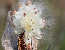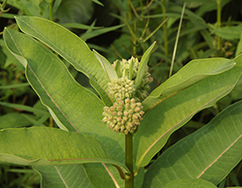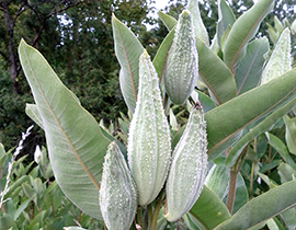 Erbacea perenne alta fino a 2 m, legnosa alla base, contenente un lattice bianco. Fusti eretti, robusti, con peli lanuginosi. Radici che penetrano fino a 3.8 m di profondità e lunghi rizomi tuberosi, che arrivano a 40 cm di profondità. Foglie opposte, grandi (10-20 x 5-11 cm), ovato-lanceolate, con densi peli bianchi sulla pagina inferiore. Infiorescenze in cime a ombrella, con 10-130 piccoli fiori, rosati, rossi o bianchi superiormente, profumati e ricchi di nettare. Follicoli fusiformi contenenti numerosi piccoli semi, con un ciuffo apicale di lunghi peli sericei. Può essere confusa con Asclepias speciosa, che però ha foglie arrotondate o cuoriformi, fusti densamente lanosi e fiori più lunghi e meno numerosi.