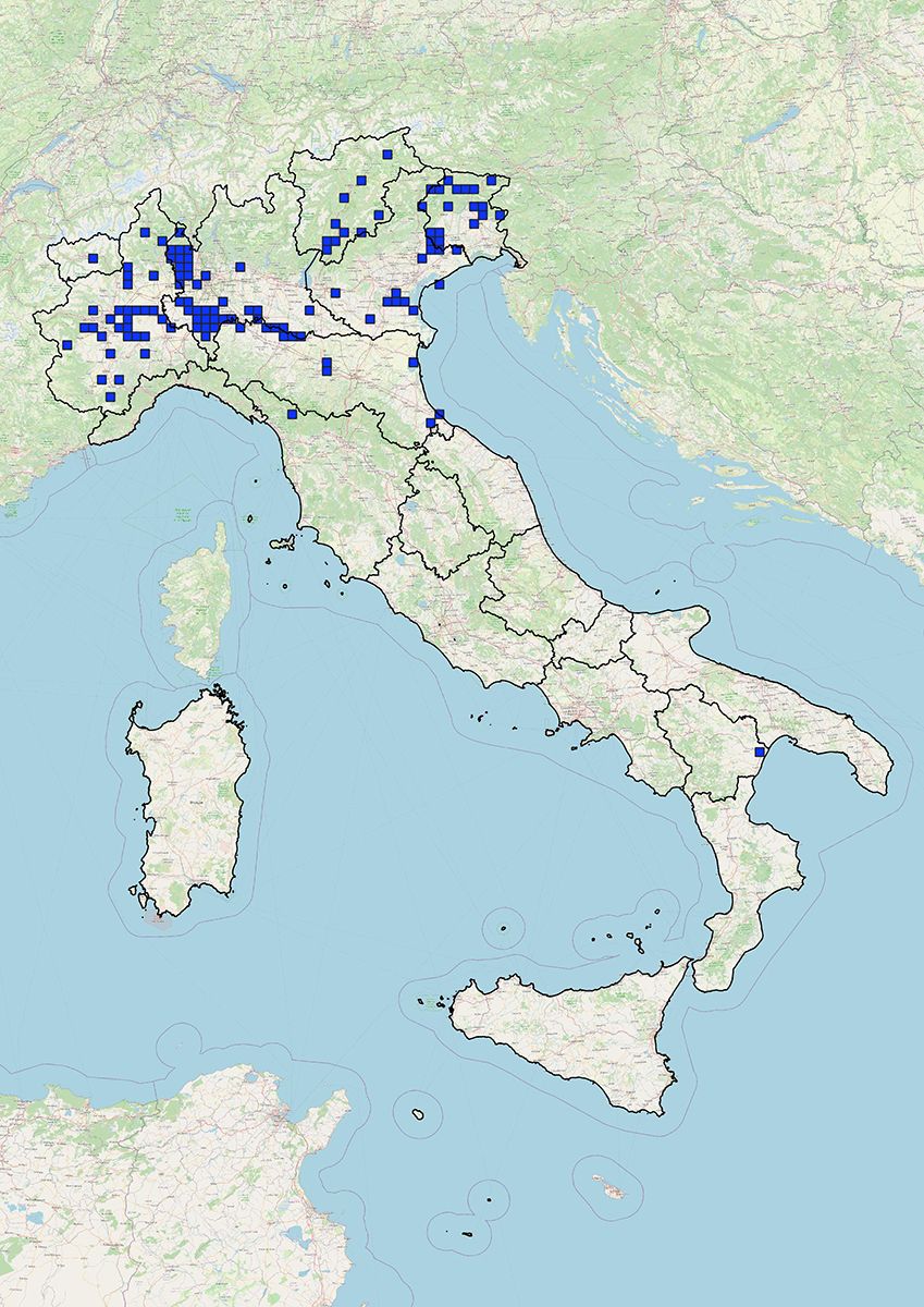 Mappa di distribuzione (su celle 10x10kmq) aggiornata a giugno 2025 per la rendicontazione ai sensi dell’art.24 del Reg. UE 1143/14.