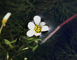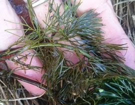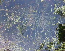 Pianta acquatica erbacea perenne, che forma densi popolamenti sommersi, con corti rizomi e radicante sui fondali. I fusti possono arrivare a 10 m di lunghezza e occasionalmente raggiungere la superficie, con fiori e foglie che possono sopravvivere per 6-8 settimane. Le foglie sommerse (circa 5 cm di diametro) sono divise in lacinie sottili e hanno forma a ventaglio. Le foglie galleggianti sono piccole e intere. Può essere confusa con altre specie aquatiche come Cabomba furcata e i generi Ceratophyllum e Myriophyllum.