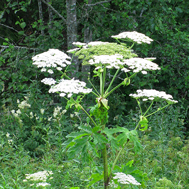 La grande dimensione e la velocità di sviluppo di questa specie la rendono estremamente invasiva in habitat ruderali e ripariali, a bassa copertura vegetale, ma anche in habitat erbacei come prati e pascoli o zone periurbane. In questi habitat la specie intercetta la luce e riduce la copertura vegetale delle native. L’ibridazione con H. sphondilum in Norvegia ha provocato una riduzione notevole della presenza di questa specie e la diffusione di forme differenti di ibridi.