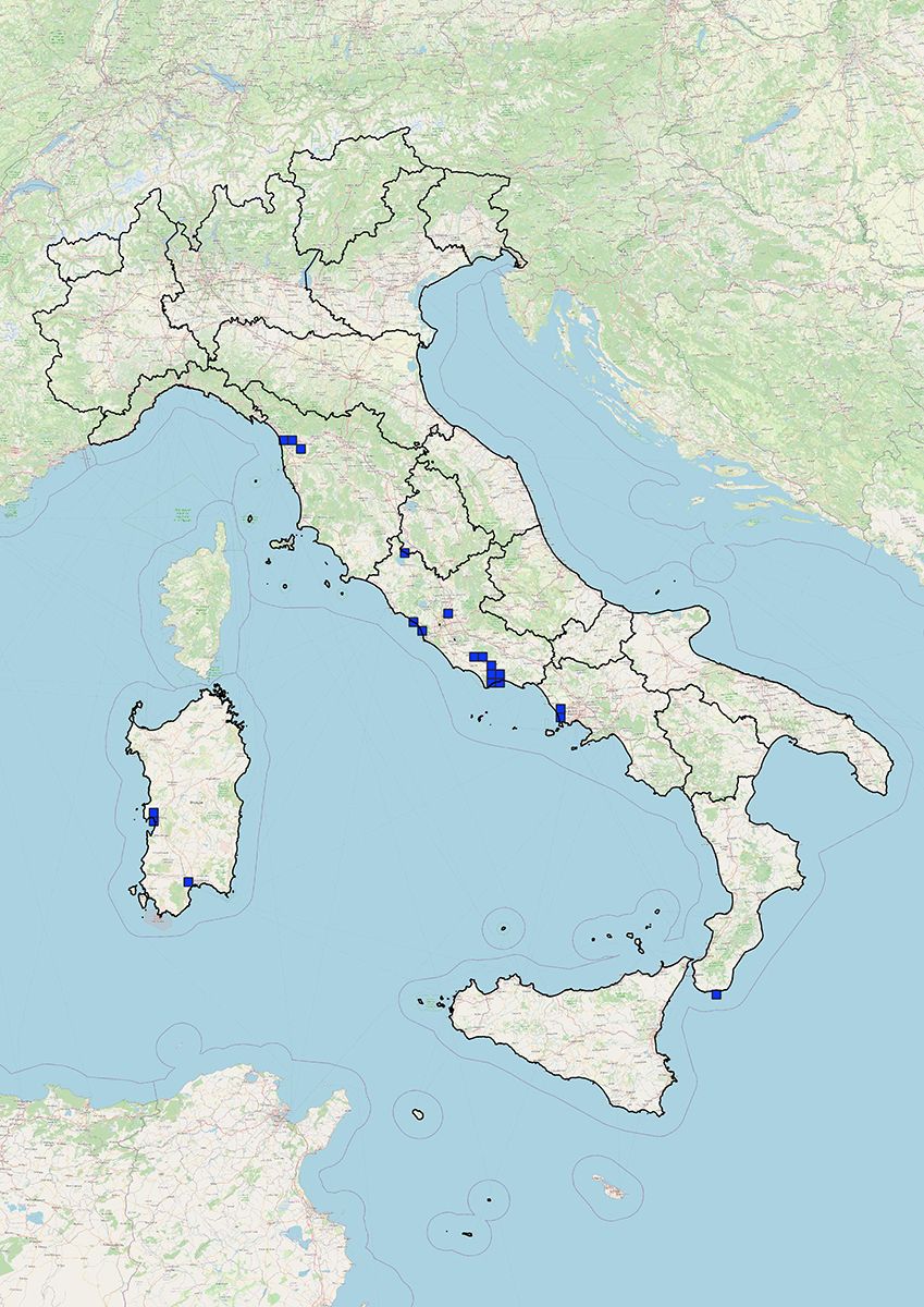 Presenza accertata in Toscana, Sardegna, Lazio, Campania e Calabria; non più ritrovata in Sicilia.