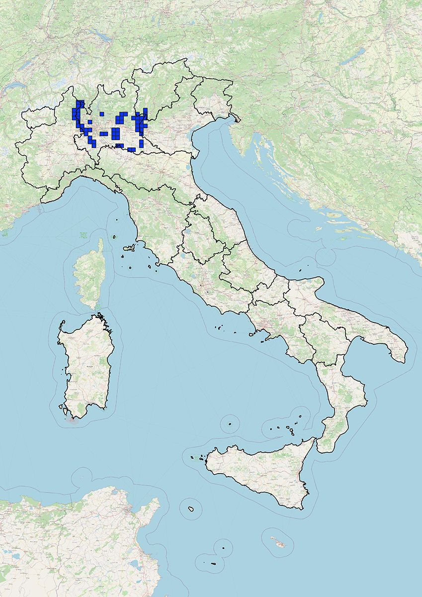 Specie segnalata in Piemonte, Lombardia, Veneto e Trentino-Alto Adige.