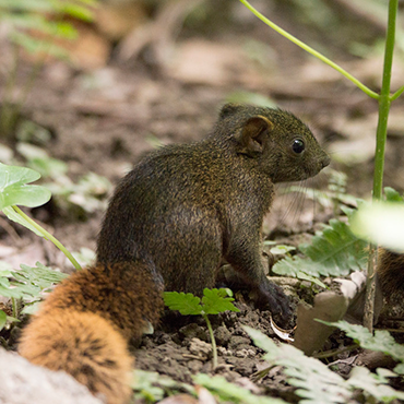 È uno scoiattolo arboricolo diurno, di dimensioni simili allo scoiattolo comune (specie nativa dell'Europa), da cui si distingue per la colorazione molto particolare, comunque soggetta a una considerevole variabilità geografica. Generalmente ventre e torace sono di colore giallastro o rosso-mogano, il dorso è marrone-oliva, mentre collo e zampe sono grigi. La lunghezza massima è di 46 cm, di cui quasi la metà costituiti dalla coda. Questa, molto folta e di colore grigio-bruna, ha parti esterne bianche. Le orecchie sono prive di ciuffi.
