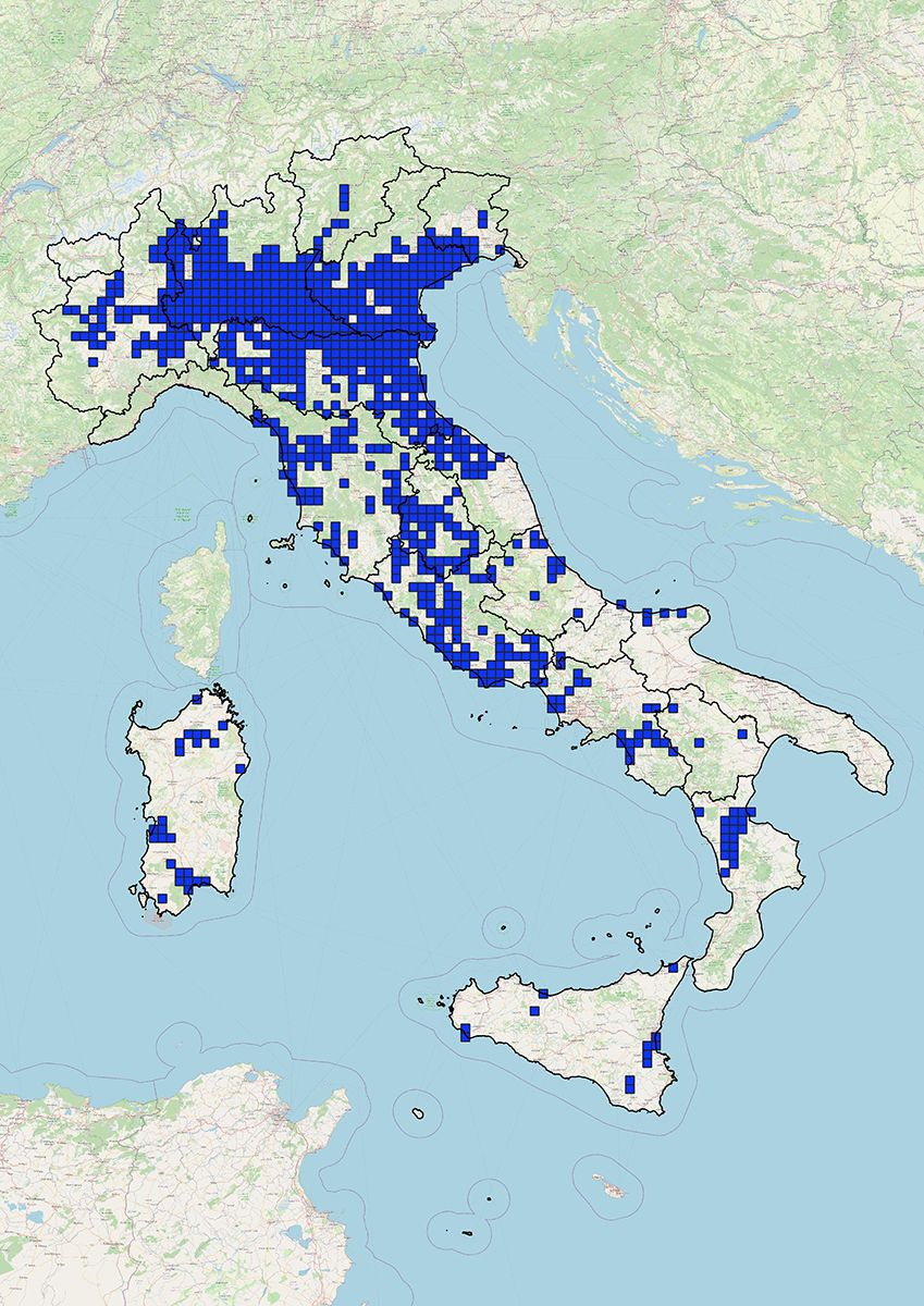 Mappa di distribuzione (su celle 10x10kmq) aggiornata a giugno 2025 per la rendicontazione ai sensi dell’art.24 del Reg. UE 1143/14.