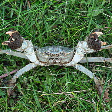 Granchio proveniente dal sud-est asiatico. E’ caratterizzato da una densa peluria sulle chele che conferisce a questi l’aspetto di guanti. Specie molto dannosa per la forte competizione e predazione verso le specie autoctone degli ambienti di acqua dolce. In Italia è stata segnalata una sola volta nel nord-est.