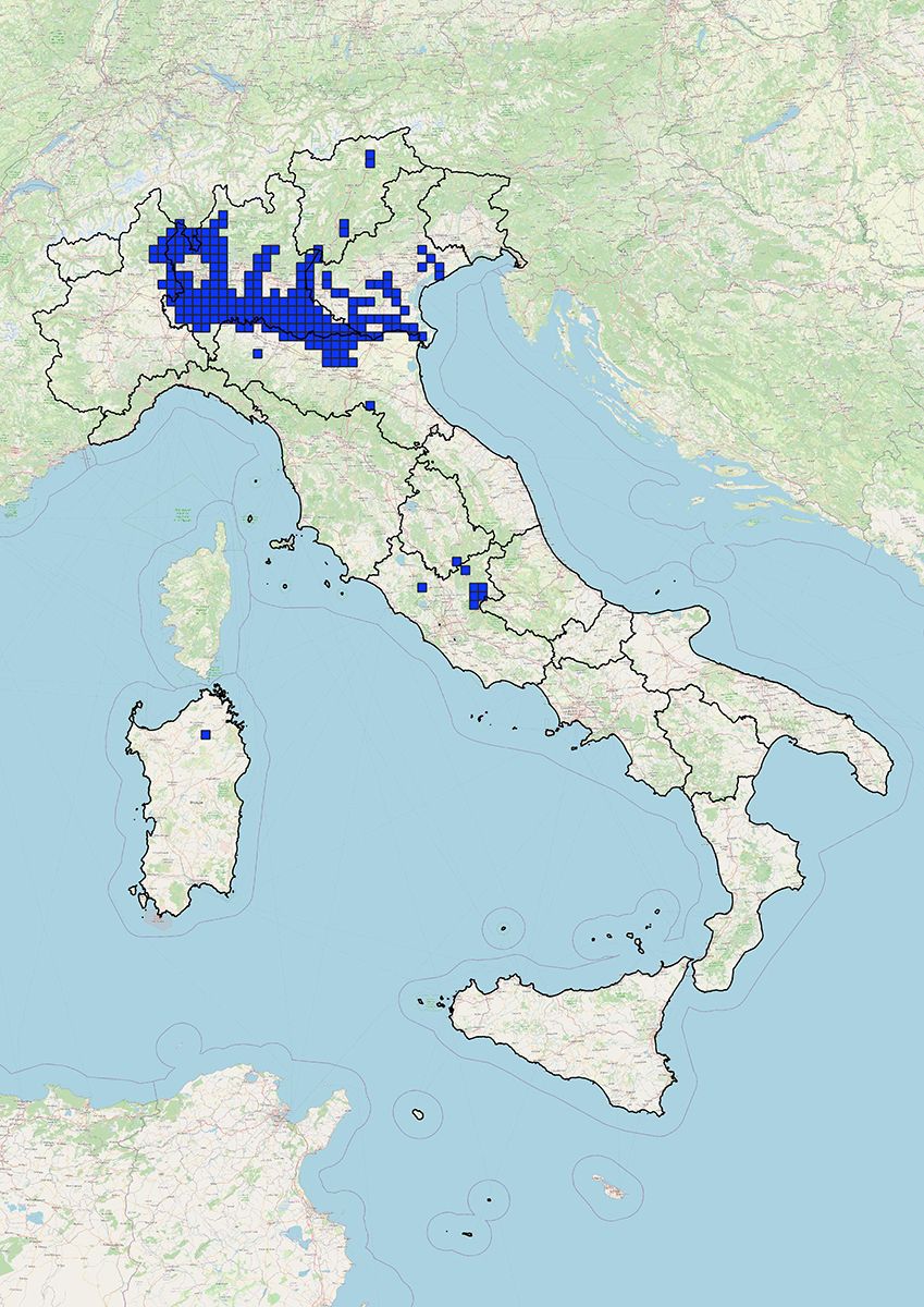 Mappa di distribuzione (su celle 10x10kmq) aggiornata a giugno 2025 per la rendicontazione ai sensi dell’art.24 del Reg. UE 1143/14.