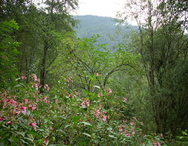 E’ stata introdotta in Europa nella prima metà dell’800 a scopo ornamentale, per i suoi fiori vistosi e profumati, molto attrattivi nei confronti di api e farfalle. Grazie alla particolare modalità di dispersione dei semi si è subito spontaneizzata nelle vicinanze dei giardini in molti Stati d’Europa e dai primi ‘900 ha cominciato ad essere osservata in ambienti naturali, soprattutto lungo i corsi d’acqua. La specie si diffonde molto velocemente: in UK, ad esempio, si è dimostrata capace di coprire distanze fino a 38 km/anno. Le attività antropiche contribuiscono alla sua diffusione su lunghe distanze; infatti è ancora apprezzata e venduta in Europa come pianta ornamentale e mellifera, inoltre può essere diffusa accidentalmente attraverso il trasferimento di terreno e il deposito in natura di rifiuti verdi.