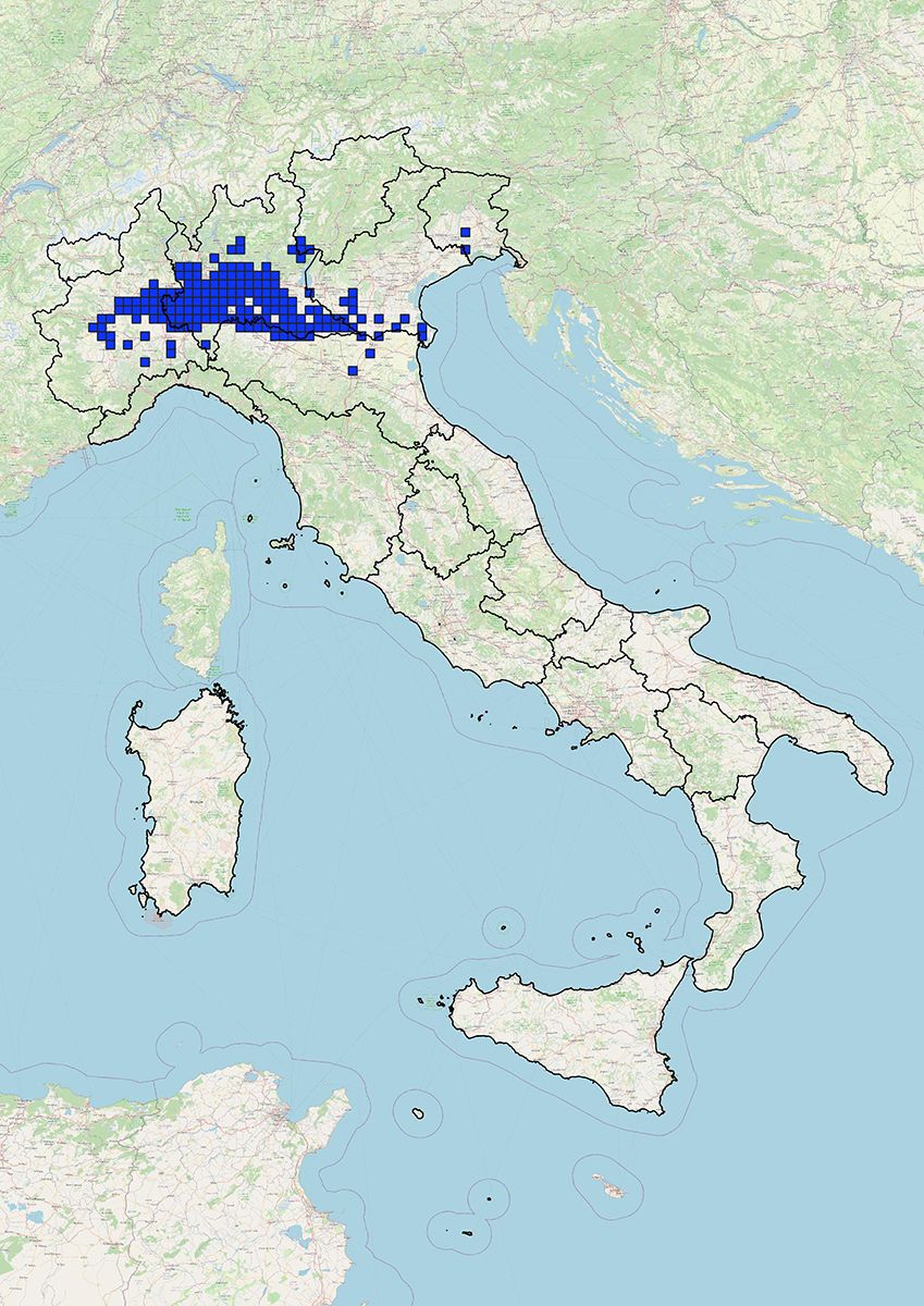 Mappa di distribuzione (su celle 10x10kmq) aggiornata a giugno 2025 per la rendicontazione ai sensi dell’art.24 del Reg. UE 1143/14.