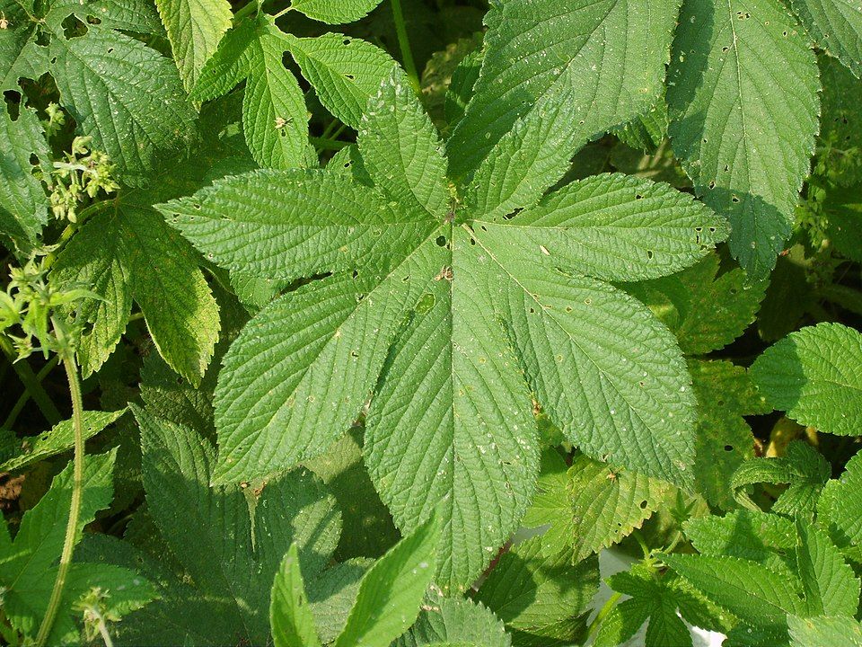 Pianta erbacea annuale rampicante, alta 1-7 m, con fusti erbacei, scabri, gracili, attorcigliati di norma ad altre piante. Foglie opposte con stipole ovate, picciolo e nervi principali spinulosi, lamina palmato-lobata a contorno circolare, con 5(-7) lobi acuti, di colore verde vivo. Infiorescenze unisessuali (pianta dioica): le maschili a pannocchia con fiori a perianzio di 6 segmenti giallo-verdognoli e 6 stami ciondolanti, a filamento molle; le femminili pendule, ovate, con i fiori ridotti a semplici ovari provvisti di 2 stigmi allungati e protrusi, circondati dal perianzio accrescente, inseriti all’ascella di brattee verde chiaro. Il frutto è un achenocono, una sorta di “pigna” formata dalle brattee (non accrescenti), ciascuna ascellante un singolo pericarpio involucrato dal proprio perianzio, con i caratteri di un achenio.