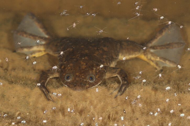 Inoltre, lo Xenopo liscio è vettore di Ranavirus e probabile vettore asintomatico della chitridiomicosi (Batrachochytrium dendrobatidis), entrambi patogeni che possono avere effetti su altre specie di anfibi.