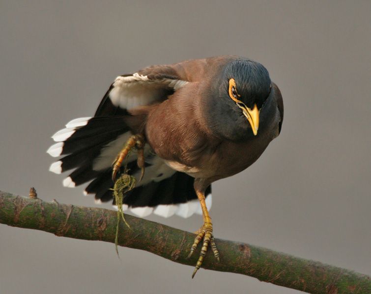 Questo passeriforme è lungo circa 25 cm, con peso che varia tra 80-140 g. É di colore marrone con testa, collo e torace nero lucido mentre il sottocoda, l’estremità della coda e la base delle primarie sono di colore bianco, meglio visibili quando l’animale è in volo. L’area sotto l’occhio, il becco e le zampe sono giallo brillanti. Il dimorfismo sessuale è trascurabile; maschi e femmine sono difficilmente distinguibili.
