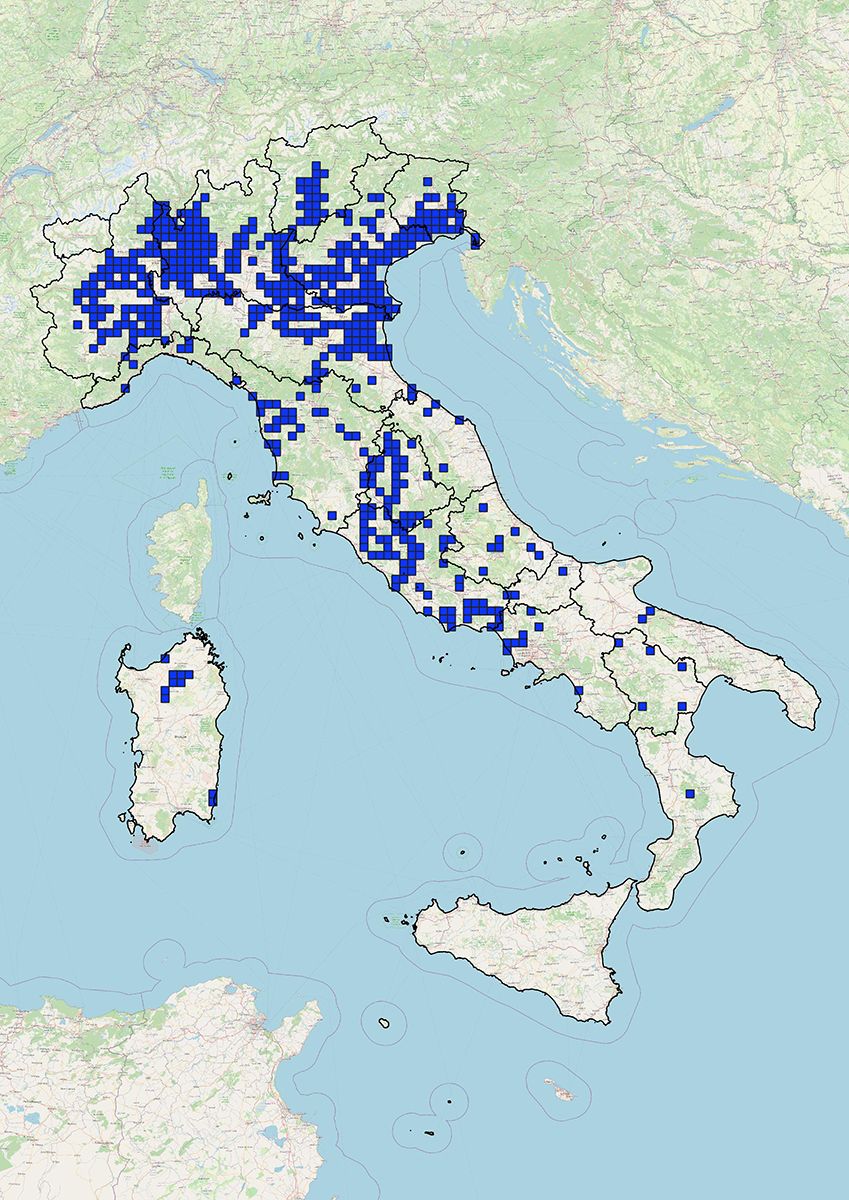 Mappa di distribuzione (su celle 10x10kmq) aggiornata a giugno 2025 per la rendicontazione ai sensi dell’art.24 del Reg. UE 1143/14.