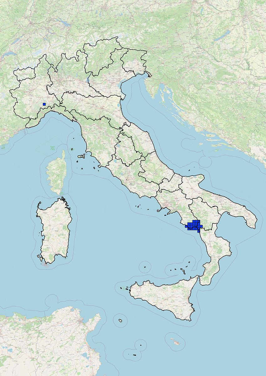 Mappa di distribuzione (su celle 10x10kmq) aggiornata a giugno 2025 per la rendicontazione ai sensi dell’art.24 del Reg. UE 1143/14.