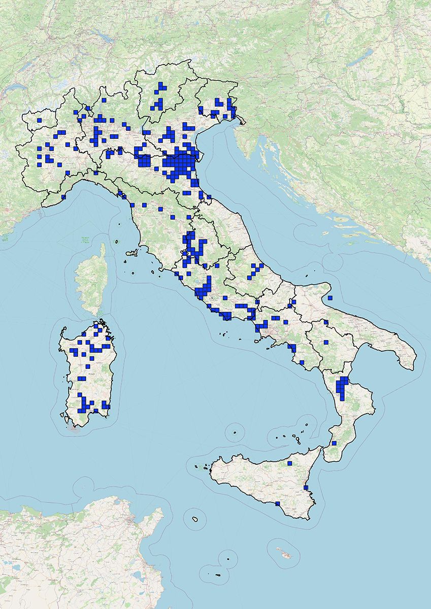 Mappa di distribuzione (su celle 10x10kmq) aggiornata a giugno 2025 per la rendicontazione ai sensi dell’art.24 del Reg. UE 1143/14.