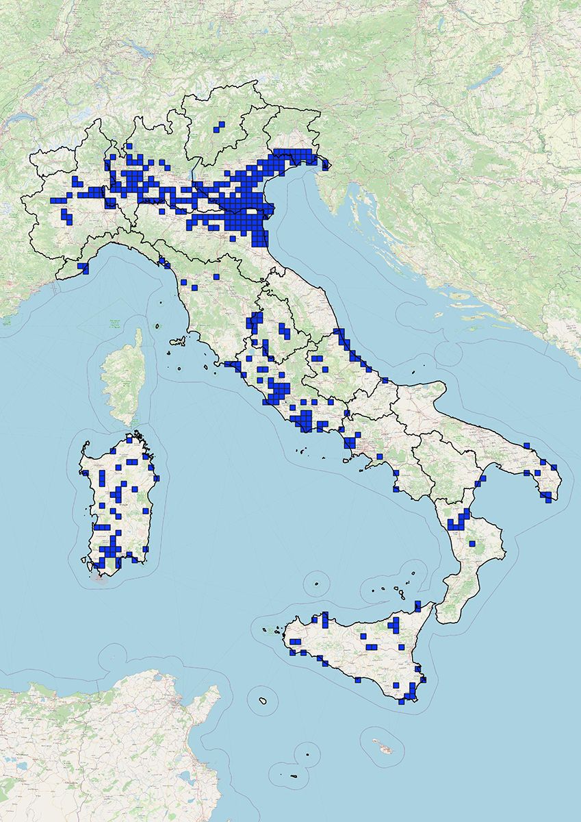 Mappa di distribuzione (su celle 10x10kmq) aggiornata a giugno 2025 per la rendicontazione ai sensi dell’art.24 del Reg. UE 1143/14.