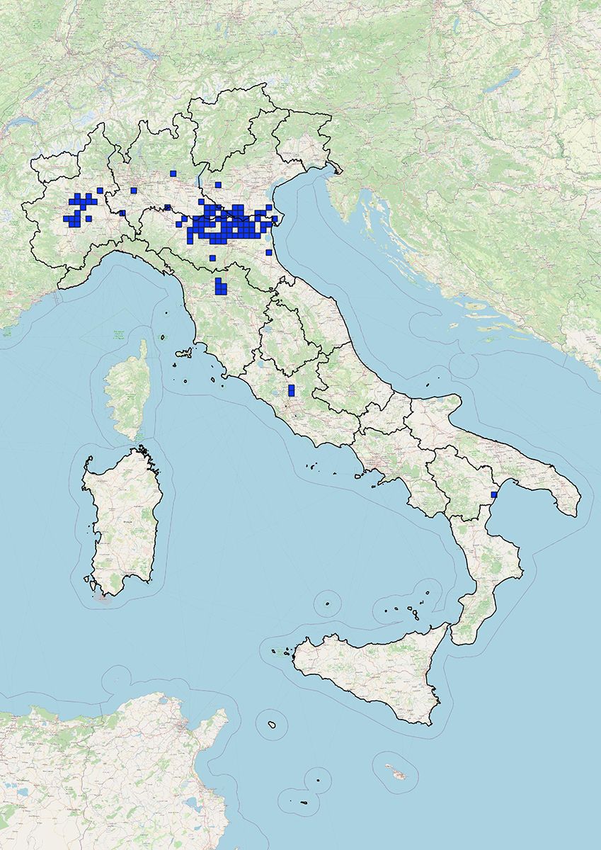 Mappa di distribuzione (su celle 10x10kmq) aggiornata a giugno 2025 per la rendicontazione ai sensi dell’art.24 del Reg. UE 1143/14.