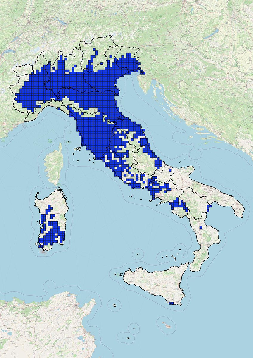 Mappa di distribuzione (su celle 10x10kmq) aggiornata a giugno 2025 per la rendicontazione ai sensi dell’art.24 del Reg. UE 1143/14.