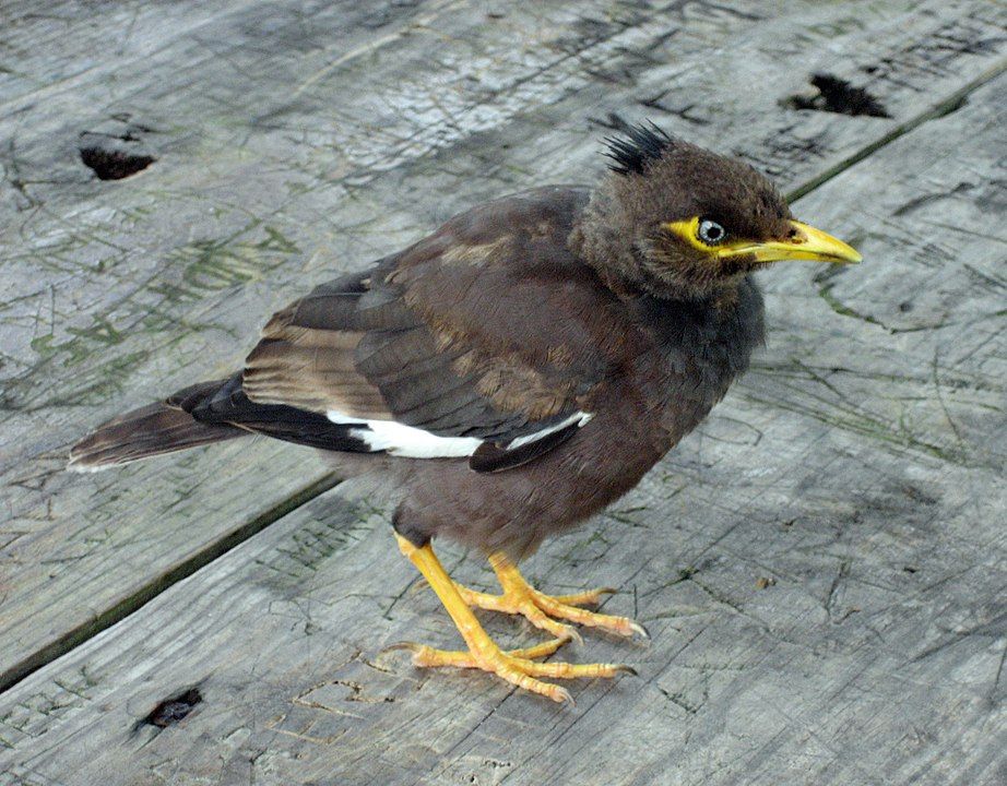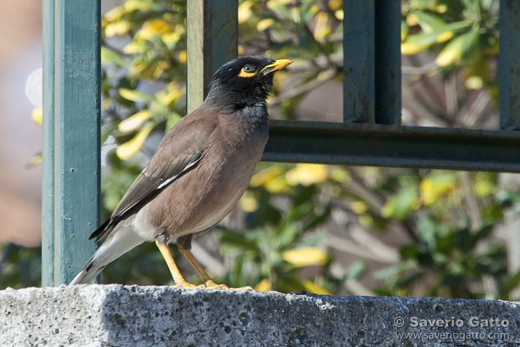 Questo passeriforme è lungo circa 25 cm, con peso che varia tra 80-140 g. É di colore marrone con testa, collo e torace nero lucido mentre il sottocoda, l’estremità della coda e la base delle primarie sono di colore bianco, meglio visibili quando l’animale è in volo. L’area sotto l’occhio, il becco e le zampe sono giallo brillanti. Il dimorfismo sessuale è trascurabile; maschi e femmine sono difficilmente distinguibili.
